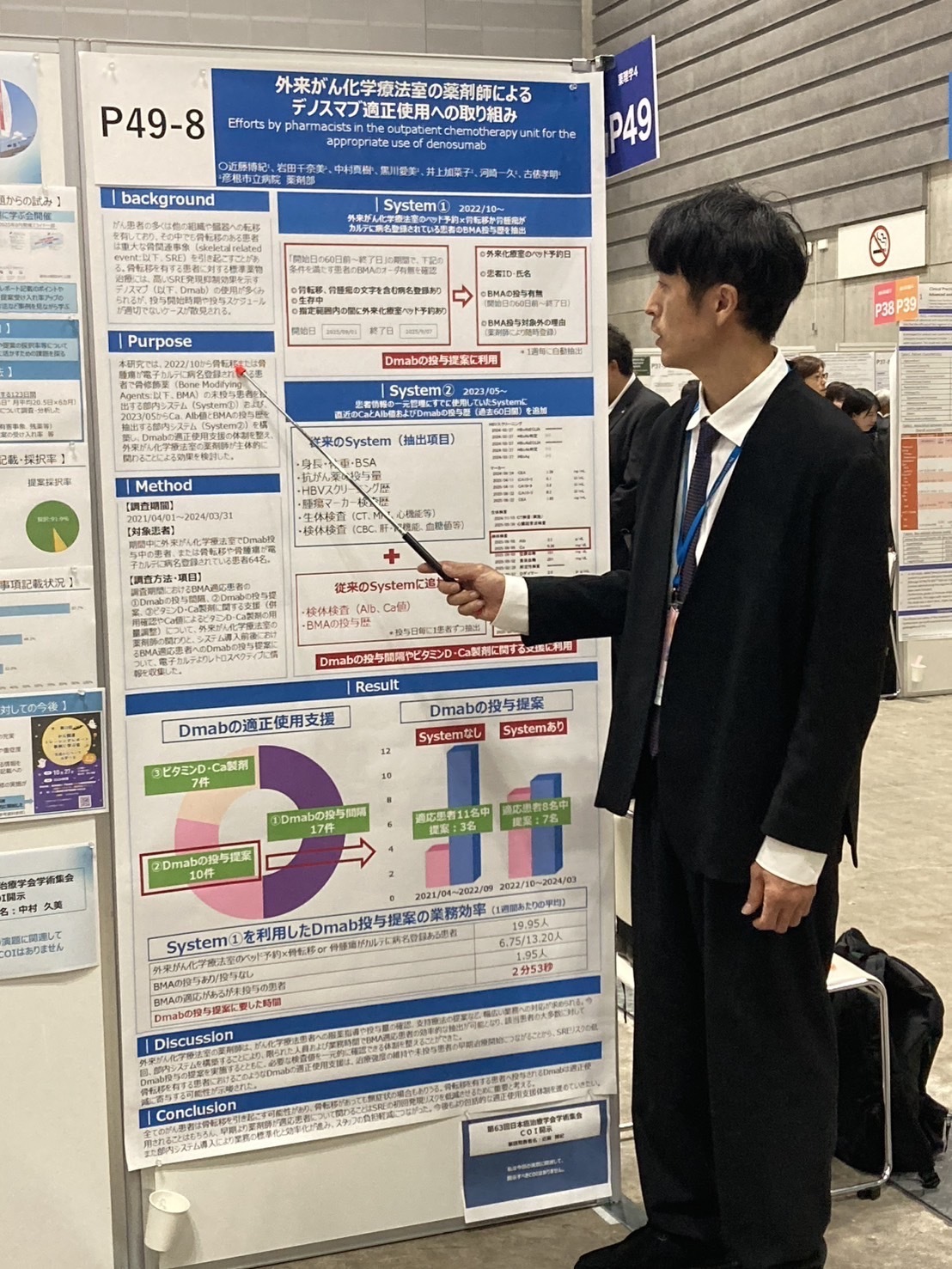 令和7年10月16日(木)~18(土)、パシフィコ横浜にて『第63回日本癌治療学会学術集会』が開催されました。外来化学療法室で勤務する薬剤師が、投与前のチェック体制をシステム化し、業務効率の向上に繋げた成果を発表しました。化学療法を実施する際、薬剤師による事前確認作業は、投与量の確認にとどまらず、必要な支持療法の入力や副作用の有無など、多岐にわたります。日々の業務に追われるなかでも、改善策を模索し実行に移す姿勢には深く敬意を表します。今後も、薬剤部のチームリーダーとして、さらなるご活躍を心より期待しております。